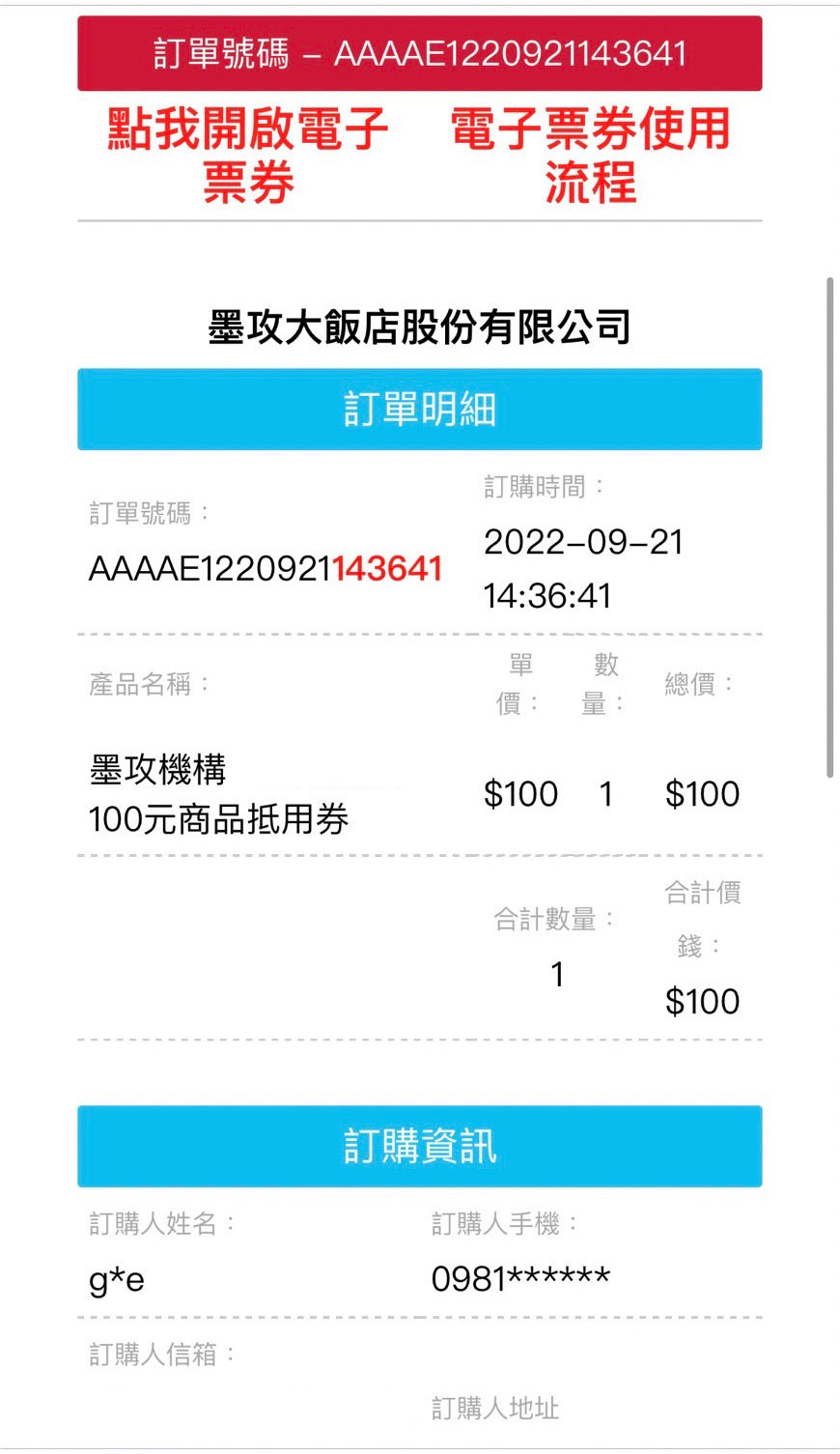 2. 點選 點我開啟電子票券