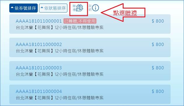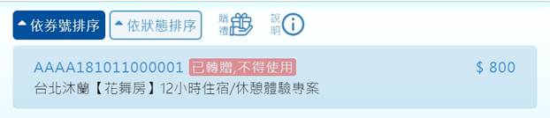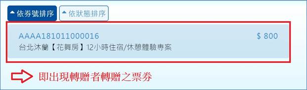 8. 完成轉贈之電子票券則會出現以下畫面