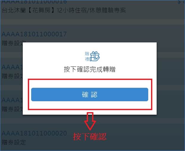 7. 按下確認即完成轉贈