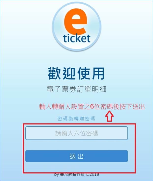 3. 輸入轉贈人設置之6位密碼後按下送出