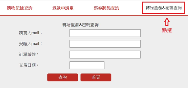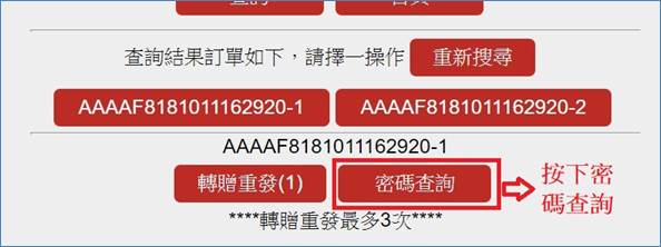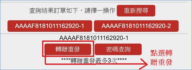 2. 點選轉贈重發&密碼查詢