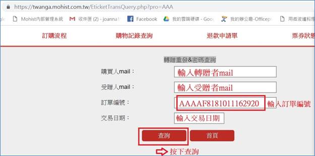 3. 輸入轉贈資料後按下查詢